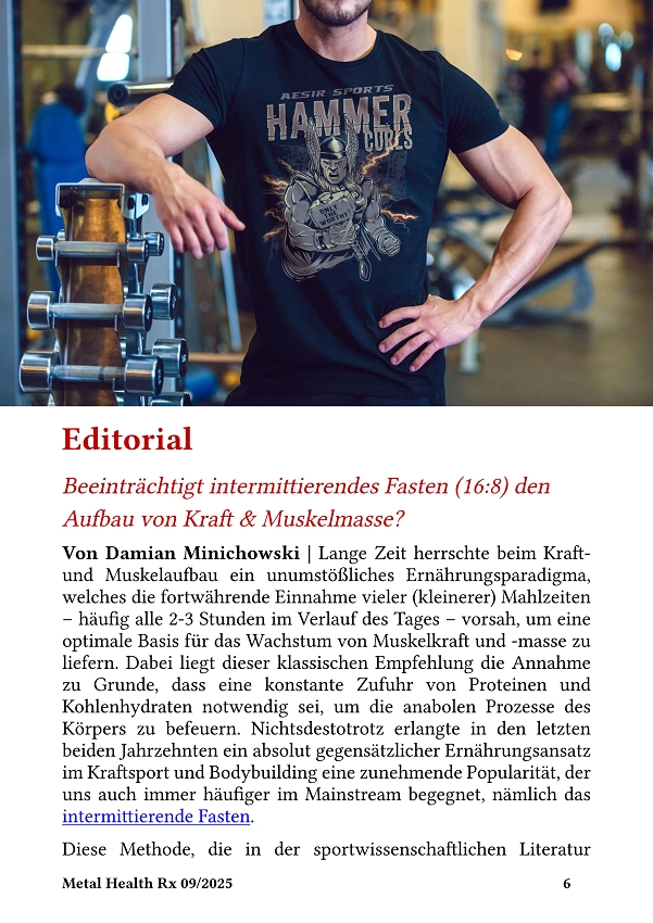 1. Editorial: Beeinträchtigt intermittierendes Fasten (16:8) den Aufbau von Kraft & Muskelmasse? (Damian Minichowski)